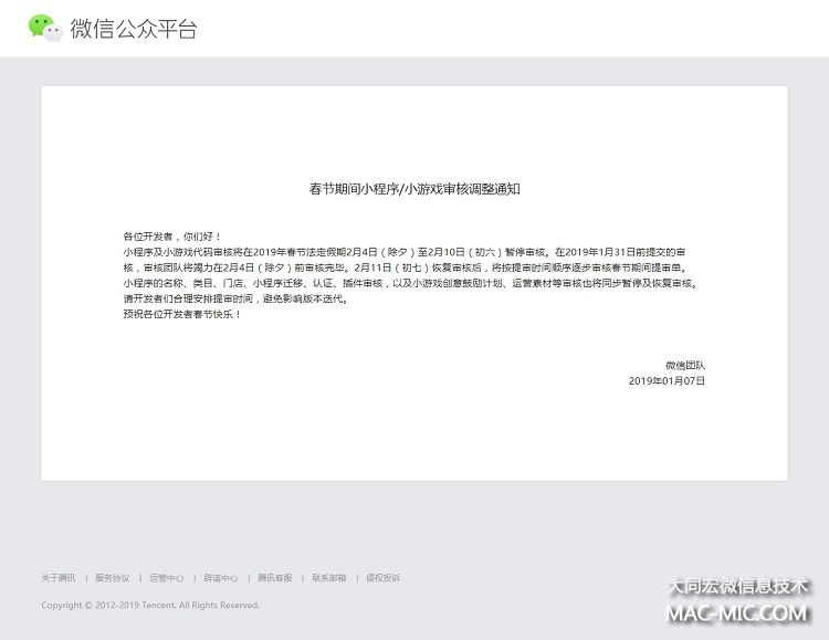 【通知】春節(jié)期間小程序/小游戲審核調整通知