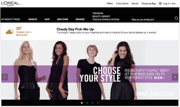 所以,如果你的設(shè)計是針對女性的,那么紫色會是一個相當(dāng)不錯的選擇,因為紫色在女性受眾中普遍受歡迎,但是對于多數(shù)男性而言,紫色并不太受歡迎。在下方的圖片中,紫色被運(yùn)用在巴黎歐萊雅的網(wǎng)頁中,效果非常不錯。主體使用的黑白配色,黑色的頁頭頁腳看起來非常優(yōu)雅,紫色點(diǎn)綴其中,整體感非常不錯。實際上他們的產(chǎn)品并不便宜,但是給人感覺比較高端。