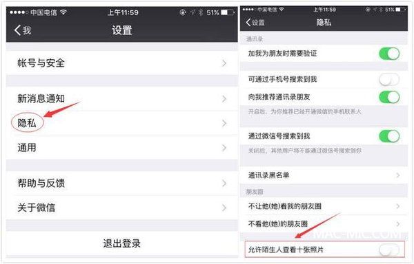 點擊[我]—[設(shè)置]—[隱私],拉至頁面最下方,找到[允許陌生人查看十張照片]功能,滑動關(guān)閉它。