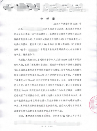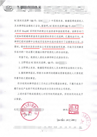 有關(guān)收到ShopNC計算機軟件著作權(quán)侵權(quán)律師函的建議